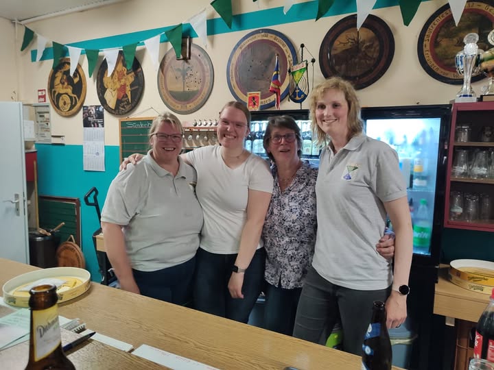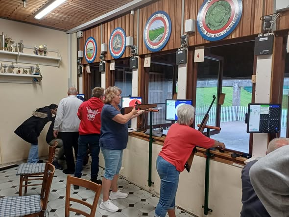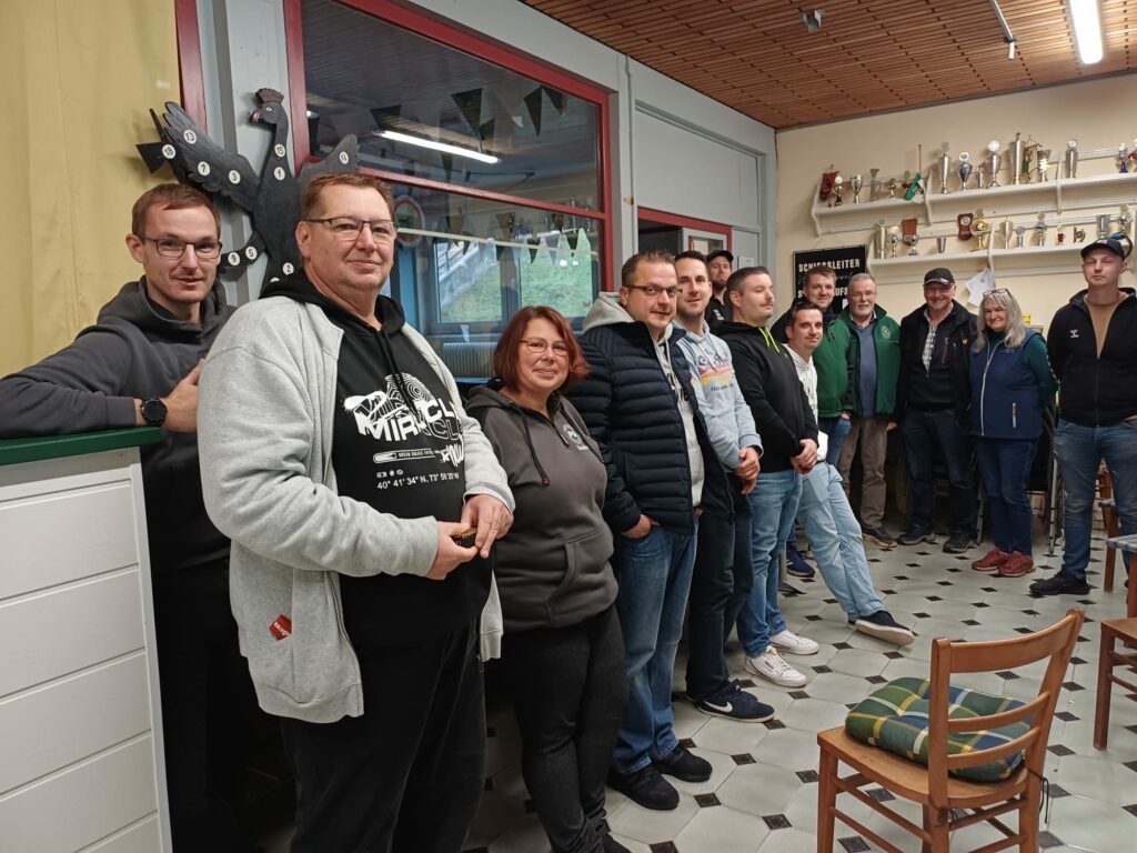 Am 06. September 2025 fand unser kleines gemütliches Herbstschützenfest statt. Hier wird nicht wie beim Sommerschützenfest auf einen Adler geschossen, sondern es geht darum, mit dem Kleinkalibergewehr in mehreren Disziplinen gute Ergebnisse zu erziehlen. Die besten Schützen/Schützinnen erhalten dann jeweils Sachpreise in den einzelenen Diziplinen (sitzend aufgelegt, stehend aufgelegt & freihand) jeweils auf 50 Meter Entfernung. Es gab auch zwei Glücksschießen (Schachbrett und Dartscheibe). Am späten Nachmittag war es dann soweit, es wurde der Herbsthofstaat und Majestäten ausgeschossen. Hier ist es so, dass die Vorjahreskönigin und König jeweils eine handbemalte Holzscheibe stiften und jeweils einen Punkt auf dieser Scheibe festlegen. Diesen Punkt dürfen sich die Schützen ansehen. Diese Holzscheibe wird dann in 60 Meter Entfernung aufgehängt. Anschließend wird nacheinander (Herren und Damen getrennt) auf die Holzscheibe geschossen. Jeder Schuss wird dokumentiert. Wer am dichtesten an den jeweilig festgelegten Punkt geschossen hat, der wird König/Königin, 1. Ritter/1. Hofdame oder 2. Ritter/2. Hofdame. Es war ein sehr schönes und harmonisches aber auch spannendes Herbstschützenfest, welches mit einem gemeinsamen Frühstück begann und mit einem leckeren Abendessen und anschließendem gemütlichen Beisammensein ausklang.Ist möglicherweise ein Bild von 6 Personen und Text Auf dem Foto von links nach rechts:
