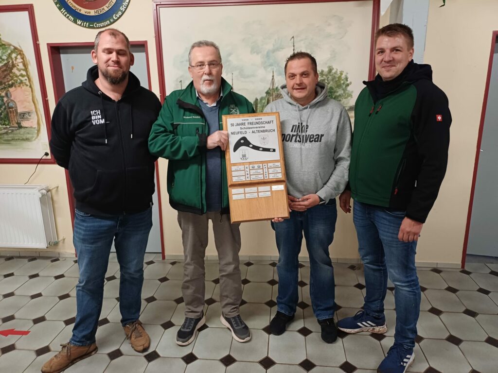 Dem Schützenverein Neufeld ist neben dem Schießsport und dem Darten auch das aufrechterhalten von Freundschaften mit anderen Vereinen wichtig. Eine besonders langjährige Freundschaft besteht mit dem Schützenverein Altenbruch. Nämlich seit 65 Jahren. Im Jahr 1959 wurde über Hinrich Rusch und dem dortigen Präsidenten der Grundstein für diese Freundschaft gelegt. Seither traf man sich zum jährlichen Vergleichsschießen oder nahm an dem jeweiligen Schützenfest teil. Am 08. März fuhr daher eine Abordnung zum Schützenball auf die andere Seite der Elbe. Nach einer herzlichen Begrüßung, einem reichhaltigen Essen und netten Gesprächen wurde dann das Tanzbein ordentlich geschwungen. Es war ein schönes Fest und alle hatten Spaß. Nach einem gemeinsamen Frühstück mit dem 1. Vorsitzenden vom SV Altenbruch wurde dann die Heimreise angetreten. Natürlich war man sich einig, dass es in diesem Jahr auch wieder einen Gegenbesuch geben wird.