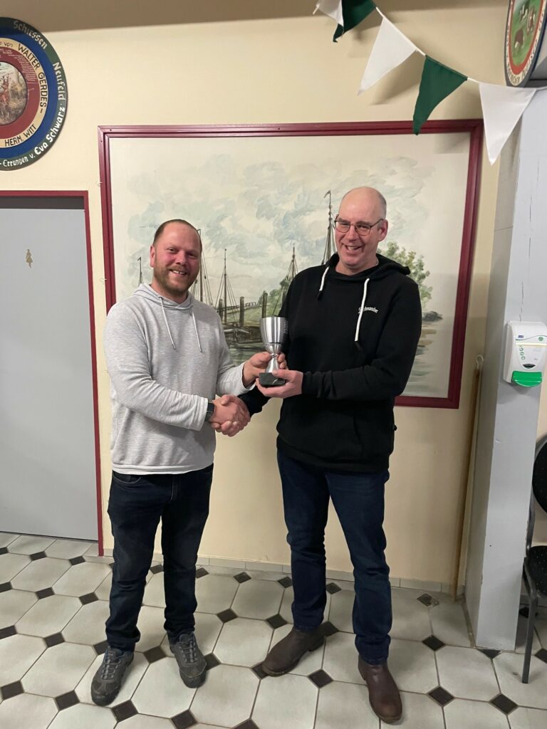 Spartenleiter Basti Breier( links) übergibt Dirk Severin den ersten Pokal des Jahres